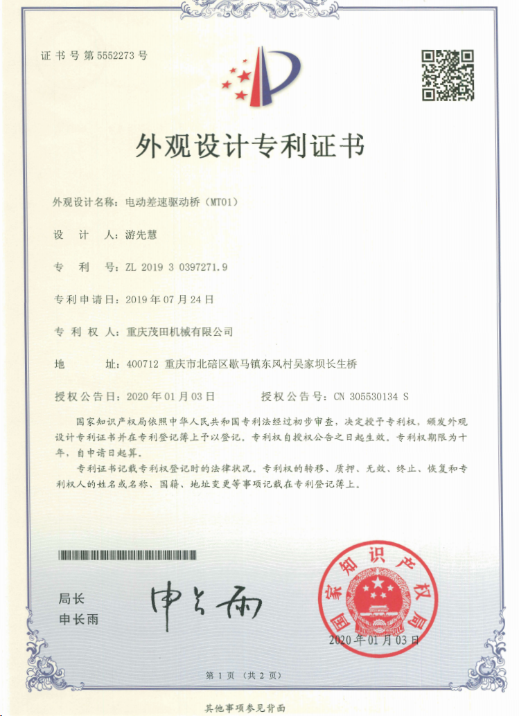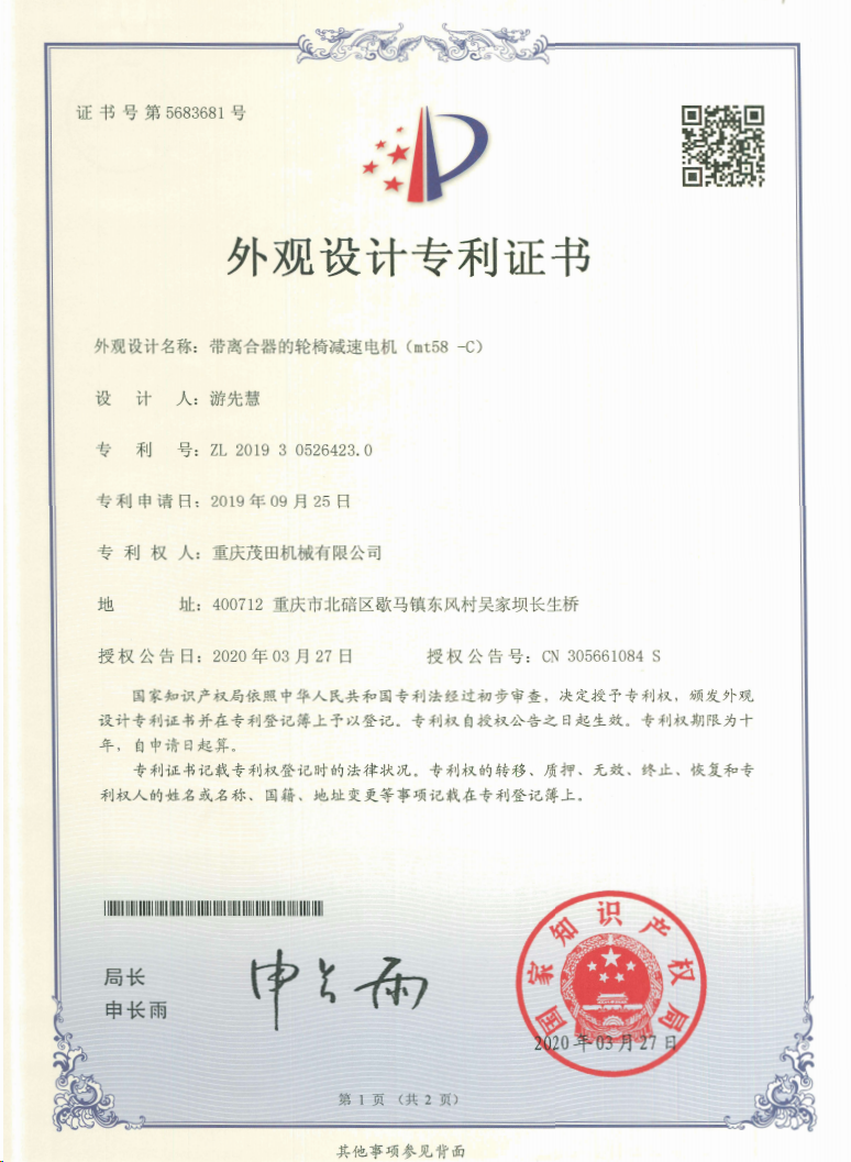 重慶茂田機械有限公司是國家級小巨人企業(yè)、國家高新技術企業(yè)、重慶市專精特新企業(yè)、重慶市知識產權優(yōu)勢企業(yè),致力于現(xiàn)代化山地農業(yè)機械、各類非標減速電機及其控制系統(tǒng)的研發(fā)、生產、銷售。擁有重慶市市級研發(fā)平臺1個 目前研發(fā)、生產、銷售產品廣泛應用于農業(yè)機械、醫(yī)療康復設備、交通代步工具、智能搬運設備、以及機器人動力系統(tǒng)等領域。我們的產品具有完整的自主知識產權,擁有多項專利技術及“重慶